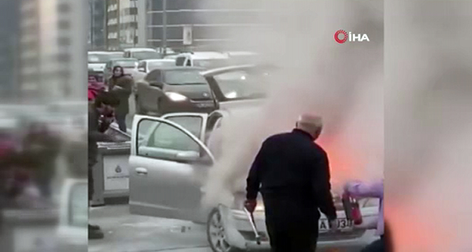 Otomobilden çıkan dumanlar E-5’in büyük bir bölümünü kaplarken, sürücü aracı durdurarak hızlı bir şekilde aşağıya inip yangına müdahale etti. Otomobildeki yangın trafikte ilerleyen diğer sürücülerin de yangın tüpleriyle müdahale etmesi sonucu kısa sürede söndürüldü. Olay yerine gelen itfaiye ekipleri otomobilde soğutma çalışmaları yaptı.